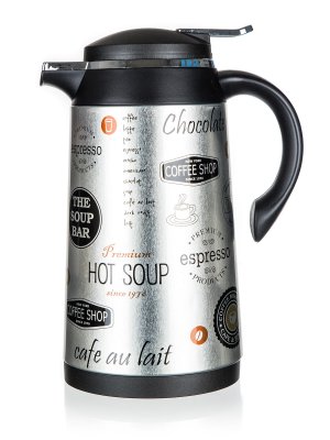 Termokanva CONTE 1 l, nerez + PH, s potlačou. objem: 1 l priemer: 13 cm výška: 26 cm mateirál: povrch nerez / plast PP / pochrómovaný ABS plast, silikónové tesnenie, vnútorná časť sklenená Termokanvica …