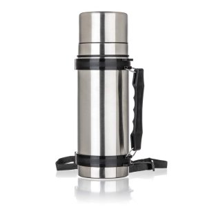 Nerezová termoska 1.1 litra, priemer 9.5 cm, výška 30.5 cm.