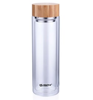 Ľahká a praktická okrúhla fľaša z borosilikového skla.