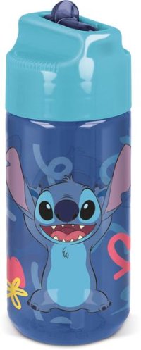 Tritánová fľaša na pitie s objemom 430 ml s motívom Stitch. priehľadný a vysoko odolný materiál bezpečnostná ovládateľná zátka proti úniku nápoja neobsahuje bisfenol ani ftaláty ľahko sa čistí