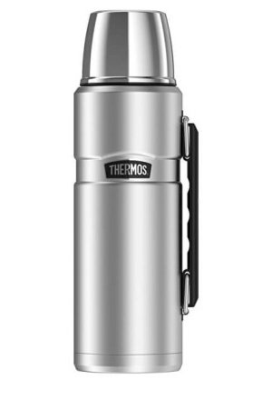 Nerezová vákuovo izolovaná termoska Thermos Active s dvoma uzávermi udržuje nápoj pri požadovanej teplote po dlhú dobu.