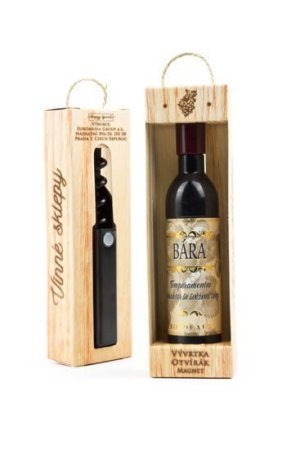 Vývrtka v tvare vínnej fľaše s originálnou potlačou vinety je vhodným darčekom pre všetkých milovníkov vína.