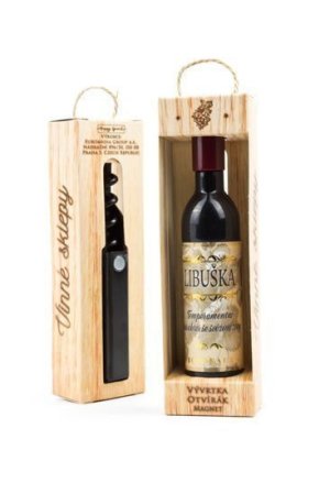 Vývrtka v tvare vínnej fľaše s originálnou potlačou vinety je vhodným darčekom pre všetkých milovníkov vína.