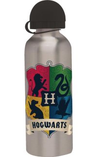 Hliníková fľaša s objemom 710 ml s motívom erbov všetkých bradavických koľají z kúzelníckeho sveta Harryho Pottera