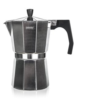 Táto tradičná veľká moka kanvica ITALIA je vyrobená z potravinárskeho hliníka a je vhodná na prípravu až 9 šálok kávy.