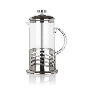 Sklenená borosilikátová kanvica s nerezovým stlačovacím sitkom.