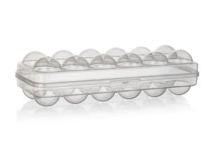 Dóza na vajcia 12 ks, 27 cm, s klick uzáverom, PH TRA. rozmery: 27 cm materiál: plast farba: transparentný Plastový box na vajíčka (12 ks) je vhodný nielen na skladovanie, ale aj na prepravu vajec.