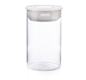 Sklenená dóza TUBE s objemom 1250 ml s tesniacim viečkom, ktoré predĺži čerstvosť skladovaných potravín.