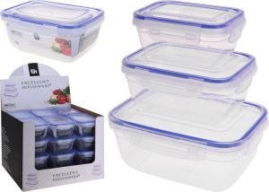 - sada 3 ks dóza + zaklapávacie viečko - 400ml / 135x95x60mm - 800ml / 160x120x70mm - 1400ml / 200x145x80mm - materiál: polypropylén / silikón - bezpečné, nepriepustné uzavretie - transparentné