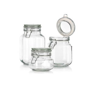 Súprava sklenených hermetických dóz EREA 0,5 l + 1 l + 2 l so skleneným viečkom a kovovým zatváracím patentom, viečko je osadené silikónovým tesnením, drôtený systém uzáveru nie je vhodný do umývačky (nie je …
