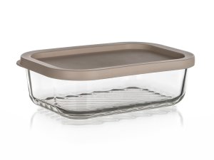 Nádoba na potraviny z borosilikátového skla so systémom Push & Go.