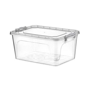Univerzálna plastová nádoba s vekom uzavretým dvoma pevnými západkami je praktickým riešením na uloženie najrôznejších predmetov.