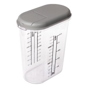 Transparentná krabica s mierkou vhodná na uchovanie potravín.