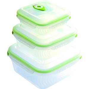 Súprava troch vákuových dóz na skladovanie potravín, ktorých čerstvosť je predĺžená až o 40%.
