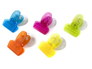 Klip s prísavkou, na papier, mix farieb (5 ks) ACASSA. balenie: 5 ks mix farieb: žltá, oranžová, ružová, modrá, zelená Sada plastových klipsov na papier, s prísavkou.