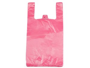 Mikrotenová taška červená pevná balená vhodná na styk s potravinami.