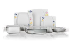 Sada jedálenská FLOREA square 18díl., porcelánová BÍ. sada obsahuje: 6 x dezertný tanier, diagonála 20 cm, šírka 18,5 cm 6 x hlboký tanier, diagonála 23 cm, šírka 22 cm 6 x plytký tanier, diagonála 27 cm, …