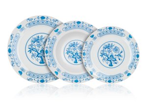 Sada jedálenský ONION 18díl., porcelánová BÍ. sada obsahuje: 6 x dezertný tanier, priemer. 19 cm 6 x hlboký tanier, priemer. 21,5 cm 6 x plytký tanier, priemer. 24 cm 18dielna tanierová sada ONION s dekorom cibulák, je vyrobená z …