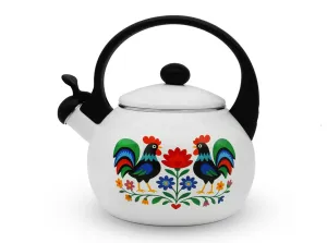 Kvalitná čajová kanvica vyrobená z nerezovej ocele so smaltovaným povrchom zvonku aj vo vnútri.