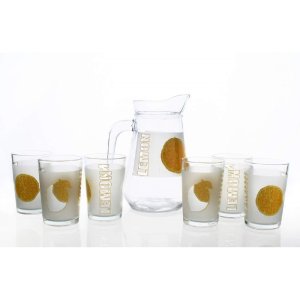 7dielny džbánový set LEMON obsahuje: 1x džbán s objemom 1 la 6 pohárov s objemom 230 ml, bežné stolné sklo v čírom prevedení s dekorom citrón.