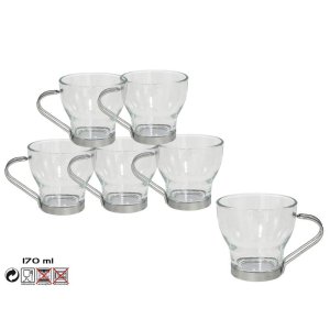 •Sada 6-dielnych 170ml kávových šálok. • Vyrobené z veľmi lesklého odolného skla. • Rukoväte vyrobené z nerezovej ocele s vysokou životnosťou a odolnosťou. •Nie je vhodný do umývačky riadu ani mikrovlnnej rúry. …