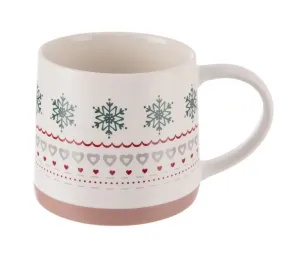 Hrnček s uchom so zimným dekórom.