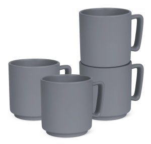 - Materiál: kamenina - 4 ks 300 ml hrnček 9,5 * 9 cm - Farba: matná čierna - kamenina prémiovej kvality - Možnosť stohovania - Matný dizajn - Možno umývať v umývačke riadu - Vhodné do mikrovlnnej rúry