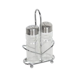 Menážka na soľ a korenie - sklenená soľnička a korenička s pochrómovanými sypátkami - jednoduché doplnenie soli a korenia - efektívne uskladnenie a prenášanie v stojane vďaka rukoväti Všetko potrebné na finálne dochutenie …
