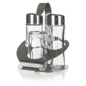 - materiál: nerezová oceľ / sklo - sada obsahuje: stojan, 2x korenička - objem koreničky: 120 ml - nastaviteľná veľkosť otvoru - stojanček je možné vďaka premyslenej základni pohodlne premiestňovať