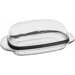 Kvalitná plastová maslienka s priehľadným rovným poklopom vyrobená z materiálu BPA Free.