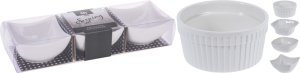 - materiál: biely porcelán - perfektný pre servírovanie predjedál, pochutín, dipov a omáčok - rozmery jednej misky cca: 9 x 4,5 cm - žiaruvzdorné do 220 ° C, možno využiť aj na zapekanie - vhodné do umývačky riadu - …
