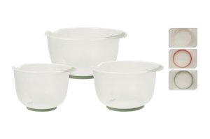 Misa šľahacia sada 3diel. (1,5 l, 2,0 l, 2,5 l) PH, s protišmykom, TRA / mix farieb. sada obsahuje 3 šľahacie misy s objemom: - 1,5 l - 2 l - 2,5 l materiál: plast farba: transparentný protišmyk - mix farieb: …