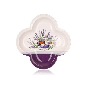 Servírovacia misa štvorlístok 32 cm LAVENDER, materiál - keramika, fialovo-biela glazúra s dekorom levandule.