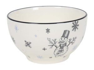 MISKA ČERVENÁ S BIELÝMI SNEHOVÝMI VLOČKAMI 30*22*15