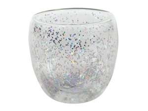 SKLENICA S DVOJÍM SKLOM S KONFETMI 250 ML, STRIEBORNÁ