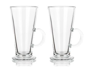 Pohár 230 ml, s uchom, IRISH COFFEE (2 ks). objem: 280 ml priemer 7,6 cm výška: 14,6 cm balenie: 2 ks Pohár Bistro IRISH COFFEE na nôžke s uškom, z číreho skla, na podávanie teplých aj studených …