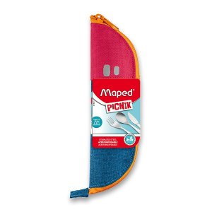 Príbor Maped Picnik z nerezovej ocele v puzdre z kolekcie Miniz v dizajne Raccoon.