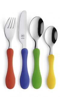 Materiál nerez oceľ 18/0. Sada príboru obsahuje nôž, vidličku, lyžicu a malú lyžičku. 1 x lyžica detská (158mm), 1 x vidlička detská (163mm), 1 x nôž detský (182mm), 1 x lyžička detská (130mm).