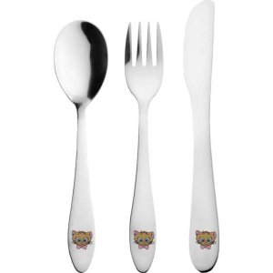 - 3 dielna sada obsahuje lyžicu, nôž a vidličku
