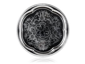 Tácka AKCENT pr. 35 cm, Cr. priemer: 35 cm materiál: pochrómovaný kov hrúbka materiálu: 0,35 mm Pochrómovaná kovová tácka AKCENT s ozdobným gravírovaním,