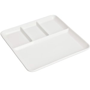 Tvrdené biele opálové sklo, hranatý tvar 23 x 23 cm.