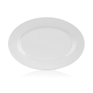 Oválny tanier DIAMOND 34,5 x 24,2 cm vo farbe bielej s ozdobným reliéfom, vyrobený z keramiky.
