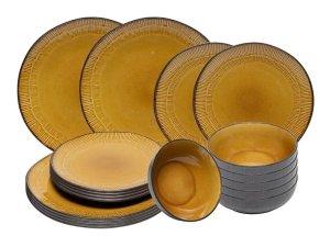 - Materiál: keramika s glazúrou- Obsah sady: - 6 x dezertný tanier pr. 22 cm - 6 x polievková miska pr. 16 x 6 cm - 6 x plytký tanier pr. 27 cm- Vhodné do umývačky a mikrovlnnej rúry