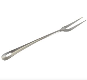 Celonerezová servírovacia vidlica s očkom na zavesenie, dĺžka celkom 35 cm.