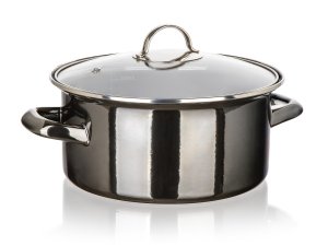 Hrniec + sklenená pokica, priemer. 22 cm, 3,7 l, METALLIC Black. priemer: 22 cm výška (bez pokrievky): 13 cm objem: 3,7 l čierna metalíza Smaltovaný hrniec METALLIC Black so sklenenou pokrievkou.