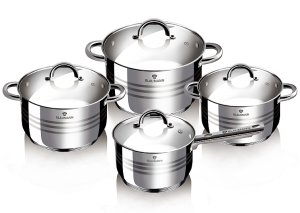 8dielna sada nerezového riadu MODENA, sada obsahuje: hrniec s pokrievkou 14 x 9,5 cm, hrniec s pokrievkou 16 x 10,5 cm, hrniec s pokrievkou 18 x 11,5 cm, hrniec s pokrievkou 20 x 12,5 cm.