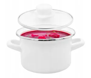 Smaltovaný hrniec s uchami a pokrievkou objemu 5 litrov, vhodný predovšetkým na škvarenie masti, ale aj na varenie všetkých iných pokrmov.