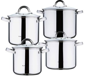 -indukčný riad -materiál: nerezová oceľ-lesklý povrch-strieborné celonerezové rukoväte-sklenené pokrievky-vnútorná odmerná stupnica-hrnce:- 16 x 14,5 cm, 2,9L- 18 x 16 cm, 4,0L- 20 x 17, 5 cm, 5,4L- 24 x …