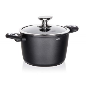 Hrniec kolekcie Carbon PRO Line značky Berlingerhaus. Objem 4,1 la pokrievka zo žiaruvzdorného skla. 3-vrstvový nepriľnavý mramorový povrch.