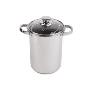 Hrniec 24 cm, so sklenenou pokrievkou, 6,1 l, nerez, CUISINO. objem: 6,1 l priemer: 24 cm výška: 14 cm materiál: nerez 201 hrúbka steny: 0,4 cm hrúbka dna: 2,8 cm materiál držadiel: nerez materiál pokrievka: …